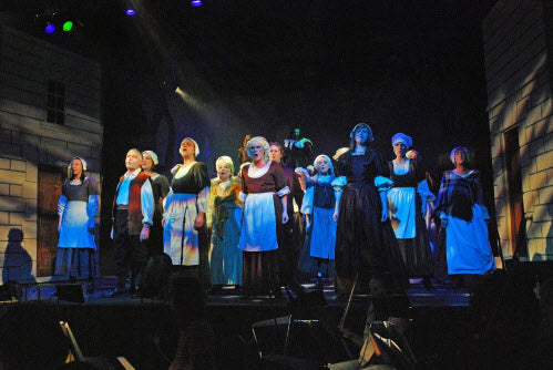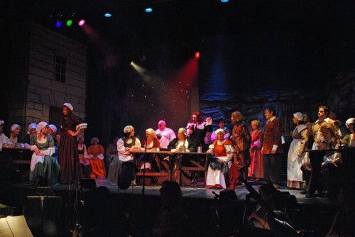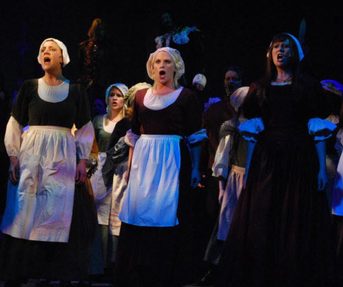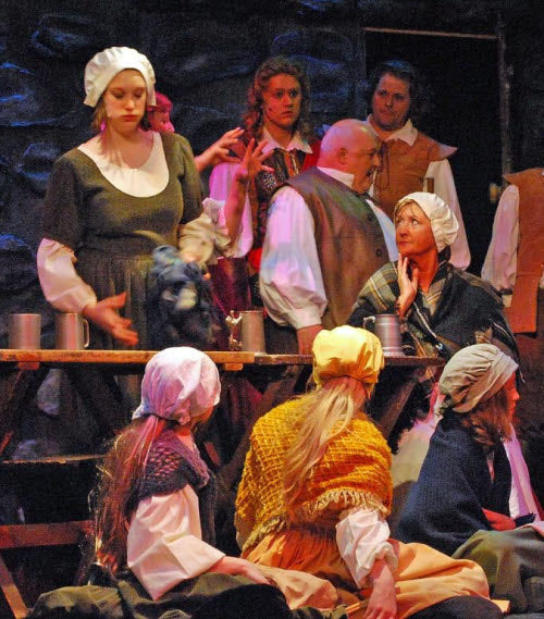 • Male and Female company, who play a variety of roles - Soldiers, an Usher (m), Villagers, Prisoners & Courtiers etc. (The numbers involved are flexible but as a minimum, the supporting cast, such as the King and Privy Council should double up as company (i.e., soldiers/villagers) as could Lady Sarah, Elizabeth and Jane, Herald, Servant, Priest and Abraham. There will need to be at least several soldiers to create any sense of presence and to satisfy the vocal parts). A few children in the chorus would be appropriate.