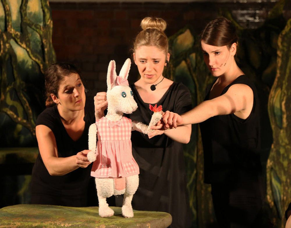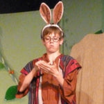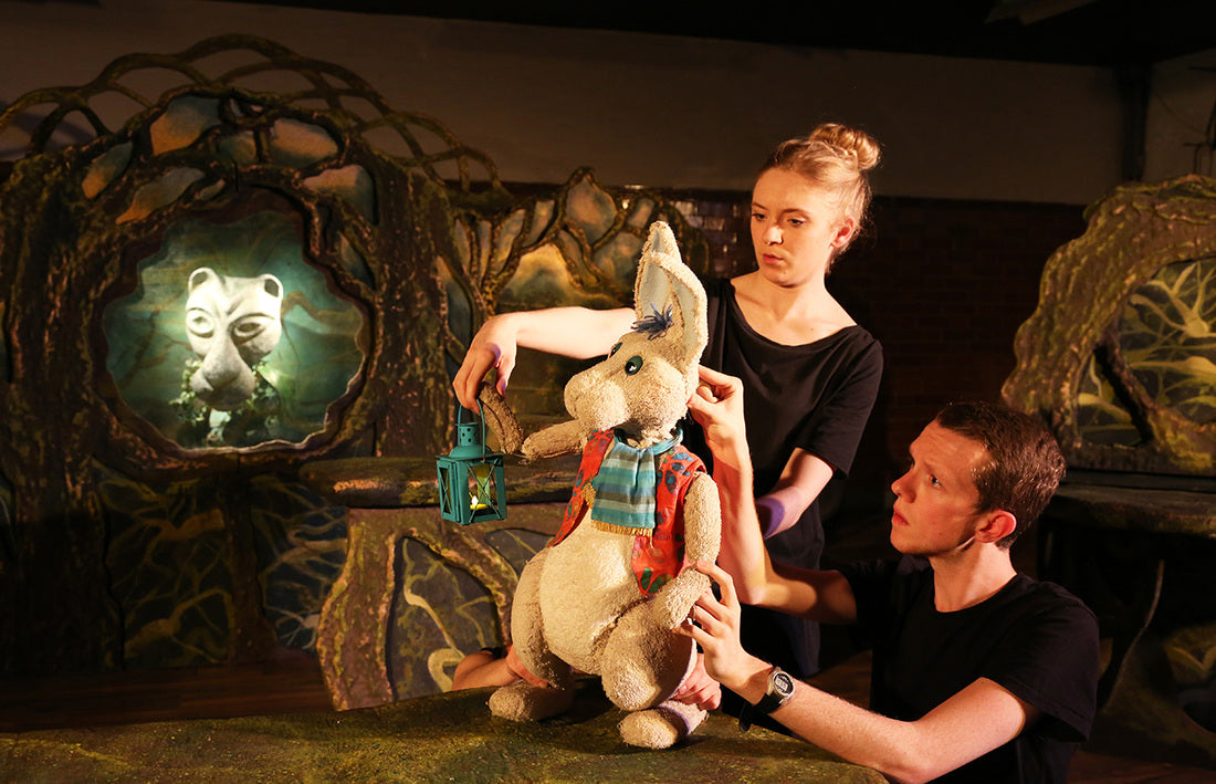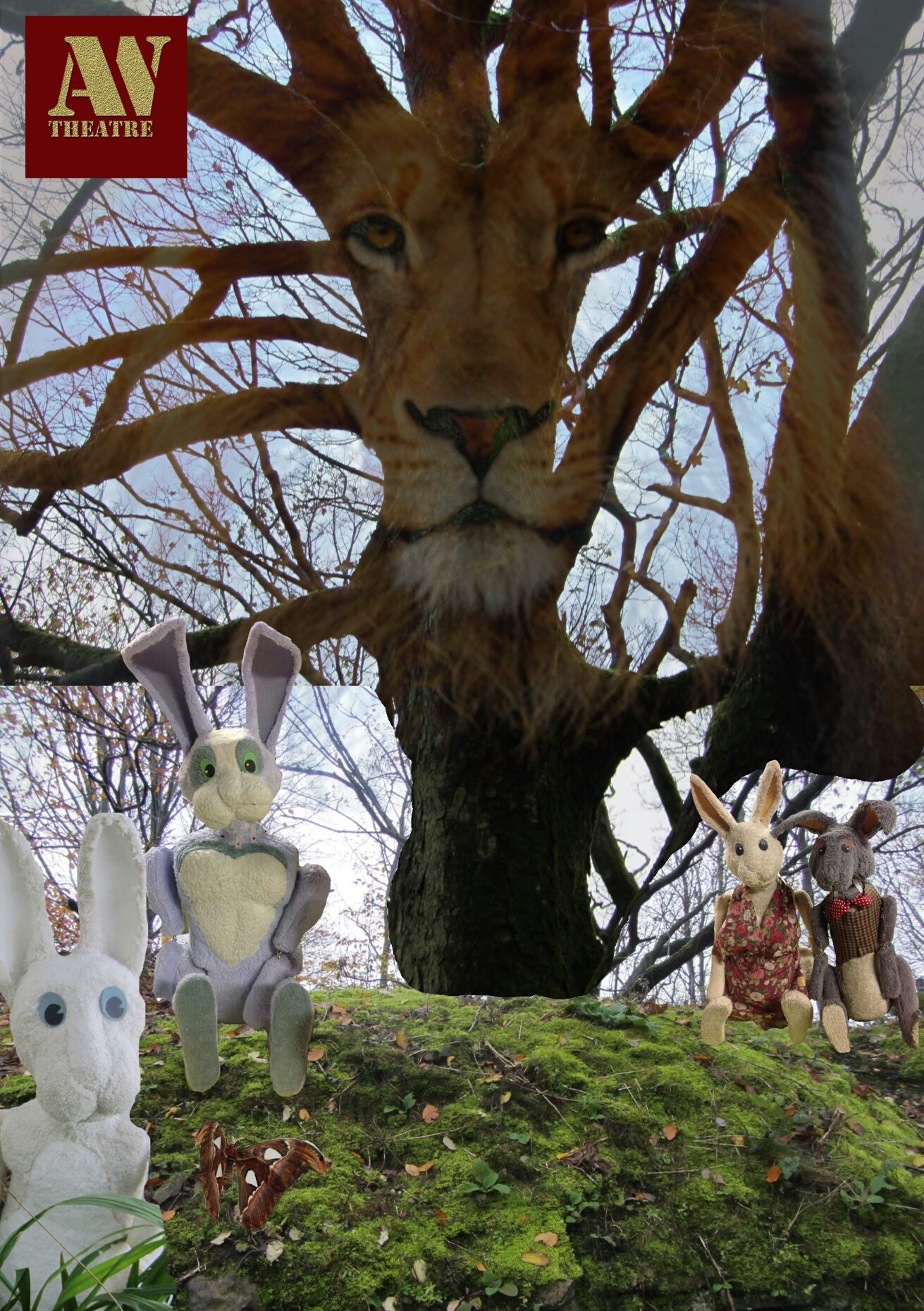 (Prologue) It is still night. A solitary Rabbit, Rafe Rarebit has wandered into The Outland to find a rare flower. It is dark and frightening. He hears the cackle of a witch and the roar of a lion and is amazed as the sun’s rays illumine a cold stone lioness. He finds the flower and gets out quickly.