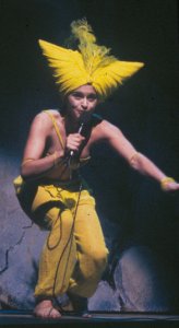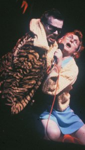 A re-working of Shakespeare's The Tempest as a musical in the vein of ‘Return To The Forbidden Planet’ It's a stupendous show jam-packed with thumpingly catchy ballads and tunes, beautiful love duets, thrashing sixties rock, and even a visit from The Supremes. The central character is Vince Prospero; he is the 'Duke Of Rock ‘N Roll', a superstar of Elvis proportions, marooned on an island with his gorgeous daughter, Annette. Their ‘spirit’ is Gidget, a genie released not from a tree, but from a bottle. The ‘other resident’ is Moondoggie, a delinquent teenage punk biker. Just as in Shakespeare’s Tempest, a wild storm is whipped up to bring the evil brother and his cohorts to the island, with Vince Prospero setting up a series of tests, designed to reveal Tony Prospero’s true evil character.