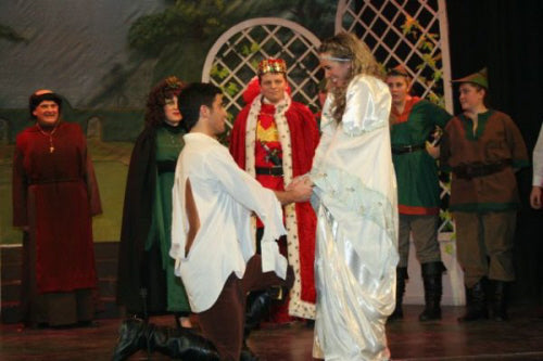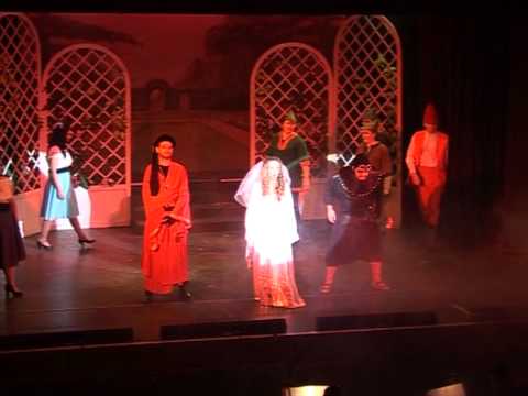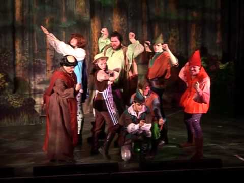 On the wedding day, the Sheriff marries a veiled Maid Marian… but, through feminine wiles, a switch is made and he actually marries Sarah! Bill(inda) arrives with King Richard who puts everything to rights: he annuls Sarah’s marriage and forces the Sheriff to marry Morgana, or it’s prison. Robin proposes to Marian, Billinda reveals she’s a woman and Little John proposes, Will proposes to Sarah and Friar Tuck ‘accidentally’ proposes to Nora. Five weddings and a big song to celebrate.